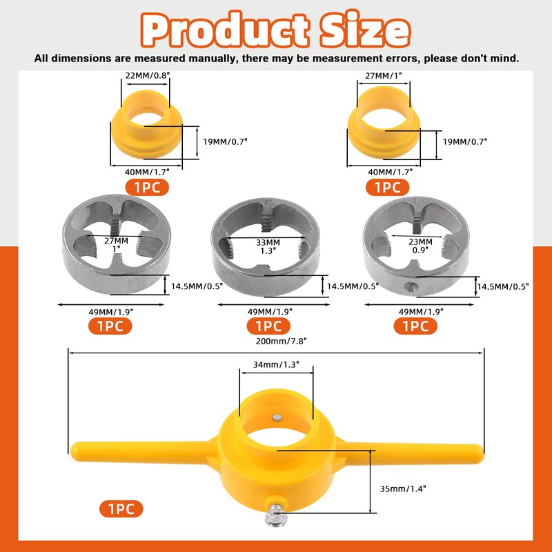- 💛[Size] This PVC thread maker tool kit contains 3 sizes of thread molds, namely 1/2 inch, 3/4 inch, and 1 inch. Different size can meet your different needs in work. The thread standard is NPT.