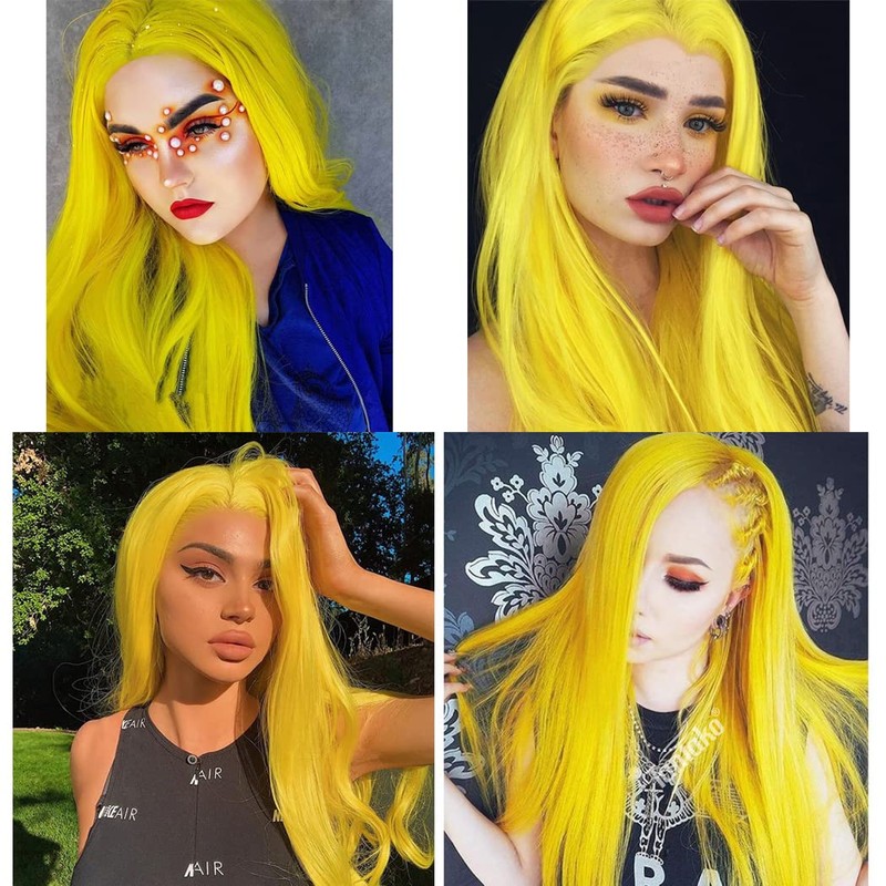 - These long yellow wigs are perfect for everyday wear, cosplay, birthday parties, costumes, concerts, Halloween, also to be the perfect gift for others.
