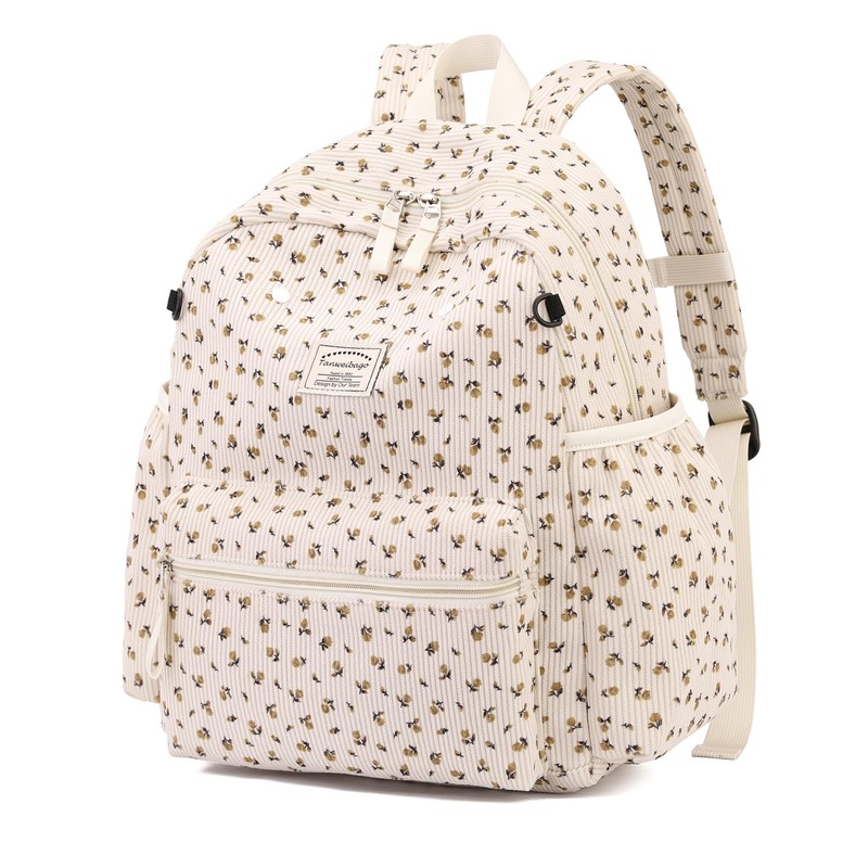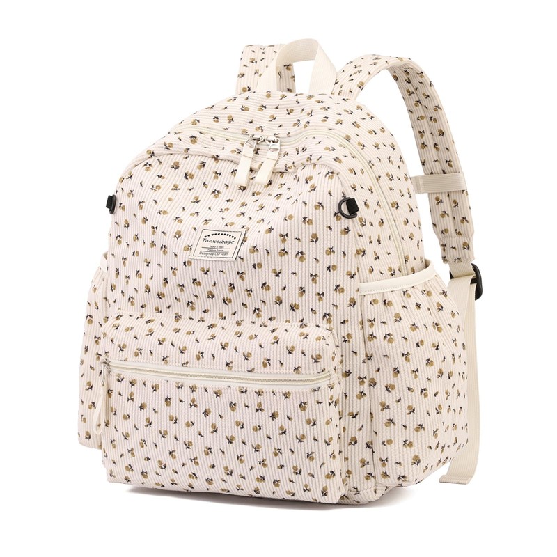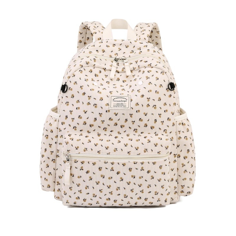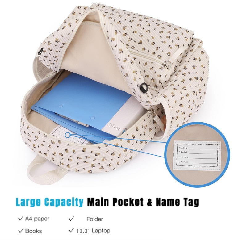 Tanweibago Corduroy Kids Backpack for Boys Girls 2-5 Toddler Backpacks for Primary Elementary Kindergarten (Flower Beige, Small (13.7" H Fit A4 Folder))