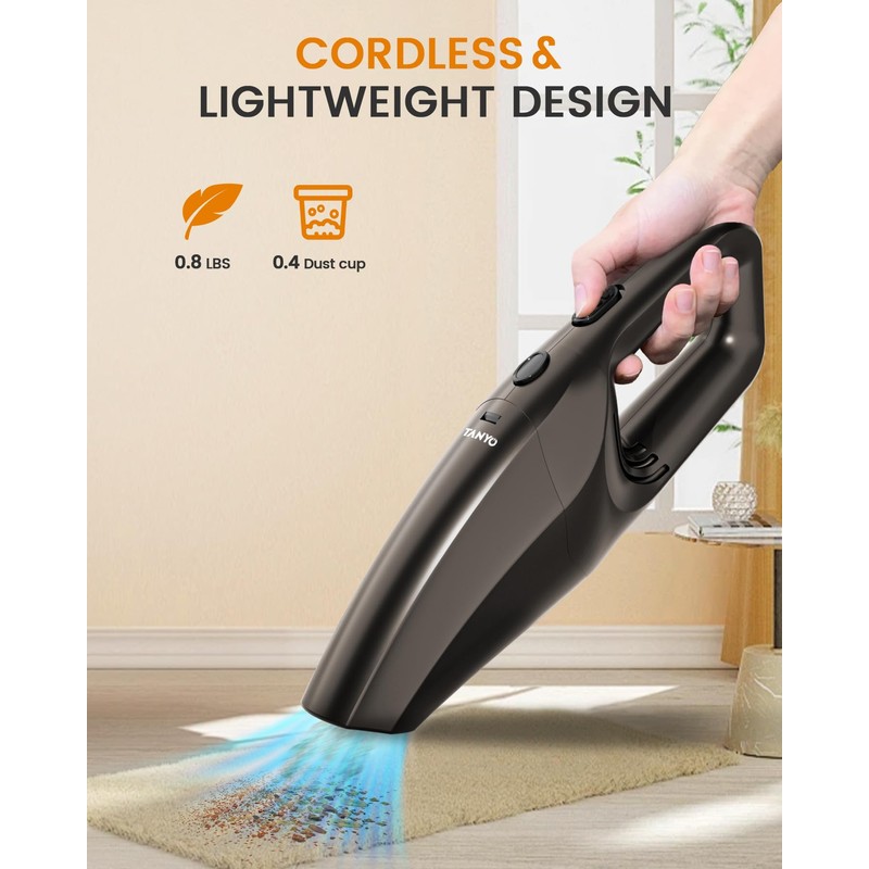 TANYO Handstaubsauger Akku, 12000Pa Kabellos Tragbar Handstaubsauger mit Waschbar HEPA-Filter, Mini Auto Staubsauger Stark Für Auto, Haus & Tierhaar Reinigung, Küche Handvakuum