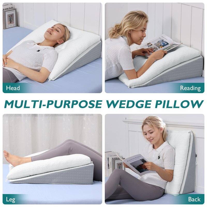 - Dual Layer Fillings: The bed triangle pillow features a patent two-layer construction for the exceptional comfort and support. The upper layer is made plush shredded memory foam, while the lower layer consists of high-resilience foam. This combination of softness and support makes it an ideal choice for recovery after surgery and achieving restful sleep.