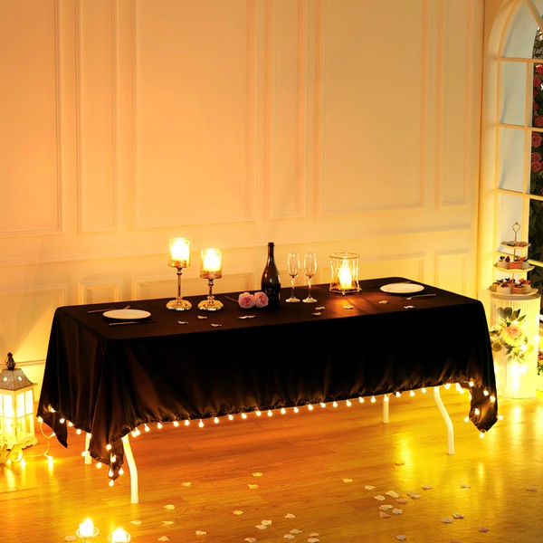 Tao-Ge Light Up Black Rectangle Table Cloth 60 x 120 Waterproof Polyester Tablecloth with Lights for Party Wedding Dining Table Decor Buffet Picnic