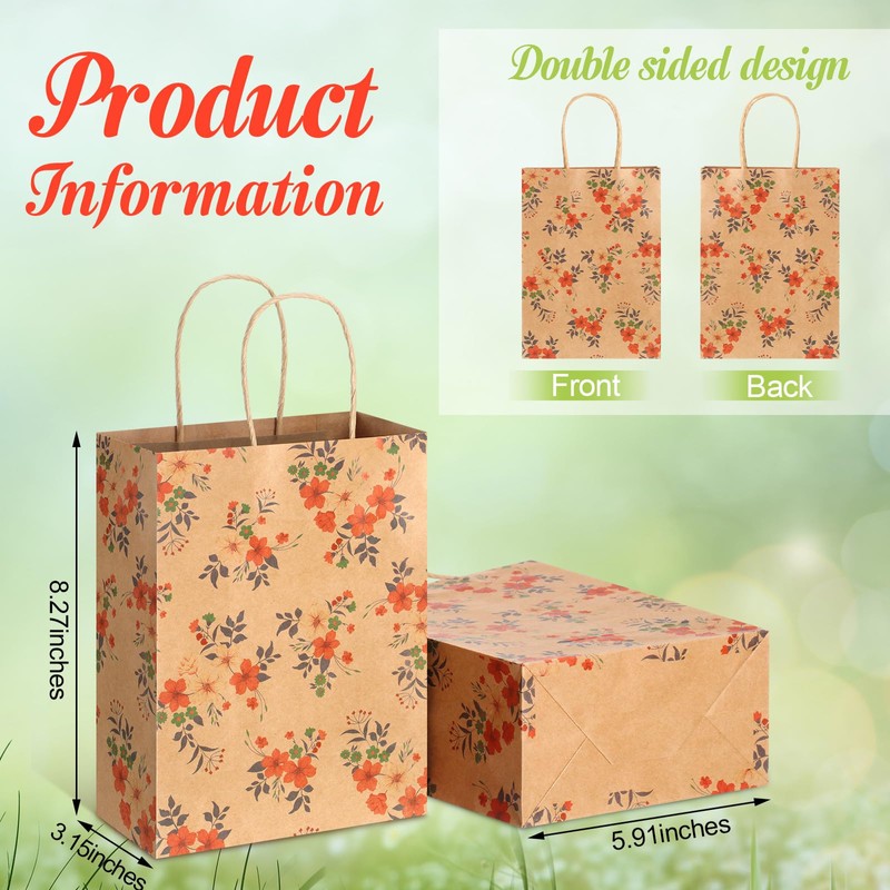 - Reliable Material: these floral paper gift bags bulk are made of quality kraft paper, reliable and sturdy, with clear printing and good workmanship; And the handle design can also give you much convenience