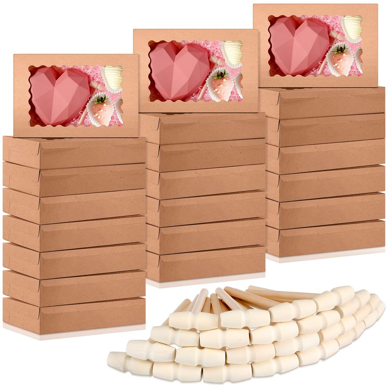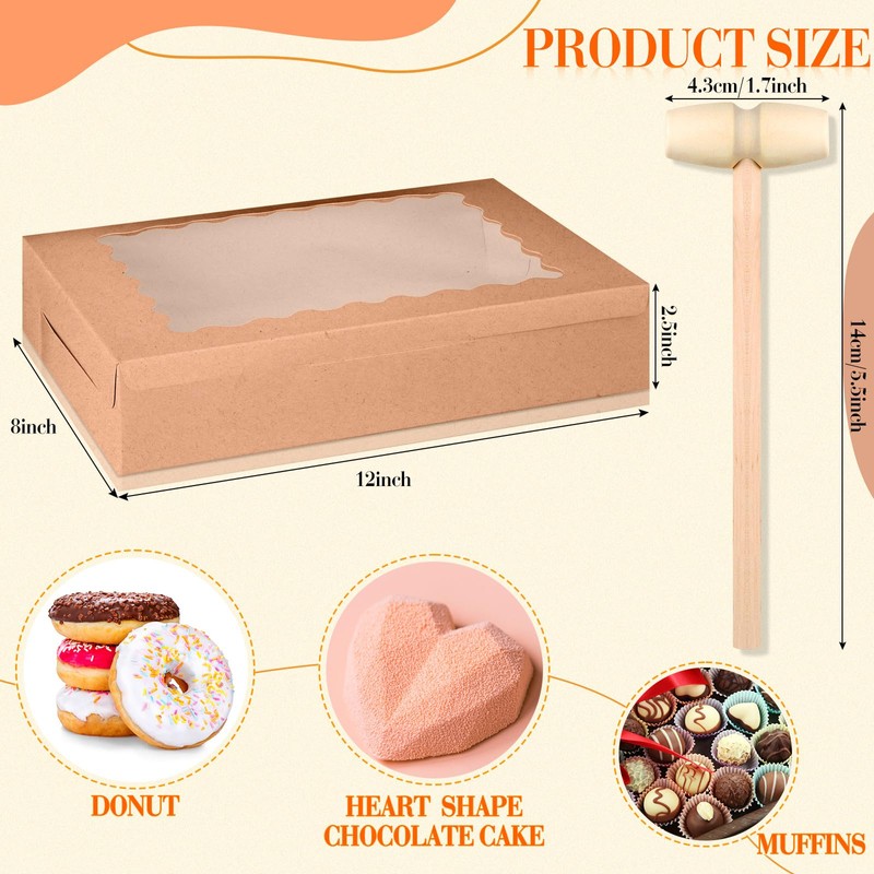 - Abundant Valentine's Day Bakery Sets: the package comes with 24 pieces cookie boxes with window and 24 pieces wooden hammer toy; And the quantities are adequate for you to prepare some delicate desserts for your guests and enjoy the break games together on Valentine's Day or daily life