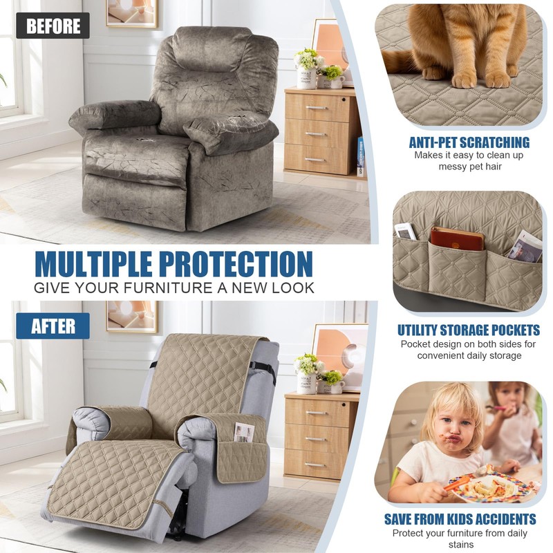 - Doble capa impermeable: 100% protección: nuestra funda para silla reclinable adopta una nueva tecnología de tratamiento impermeable de doble capa, proporcionando una función 100% impermeable y a prueba de fugas; protege tus muebles de derrames, desgaste diario o pelo de mascotas, asegurando que tus muebles siempre se mantengan limpios y secos