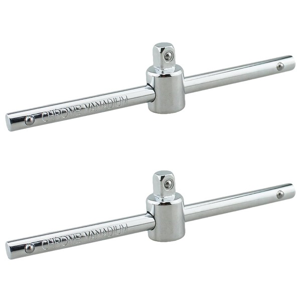 TAODAN 2PCS 1/4 Inch T Handle Wrench Length Adjustable Sleeve Silver Chrome Vanadium Steel Hand Tool Extensions for DIY and General Repair