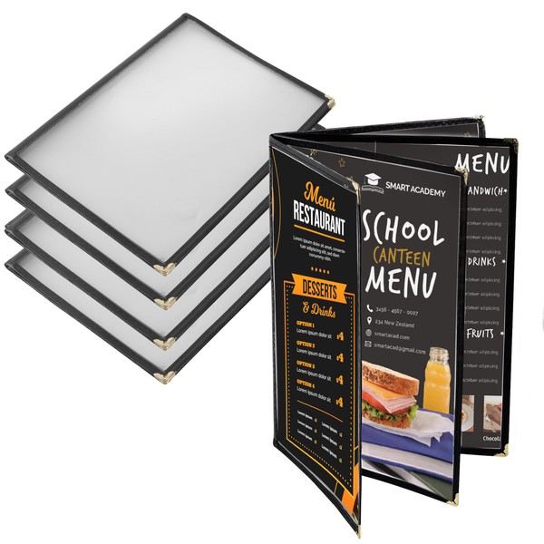 - 2.Versatile Use: Designed for A4-sized paper, with a 4-page 8-view layout, offering waterproof and oil-resistant properties. Easy wiping, catering to various needs such as breakfast menus, bar menus, or homeschooling materials.