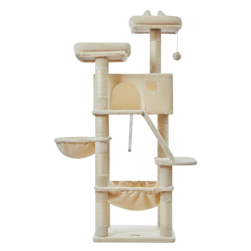 Taoqimiao Cat Tree 57.5-Inch, Cat Tower for Indoor Cats Large Adult, Extra Large Cat Condo, 8 Sisal Scratching Posts, Metal Frame Cozy Hammock, Durable Scratch Board, 2 Top Perches, Beige MS026M