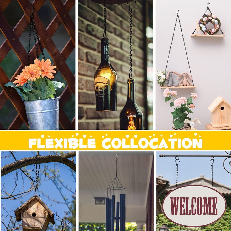 - Wide Applications: The hanging chains are widely applied for hanging bird feeders, bird houses, plant baskets, flower pots, suet baskets, lanterns, wind chimes, billboards, chalkboards and more. These hanging chains with hooks have endless uses, try to find it!
