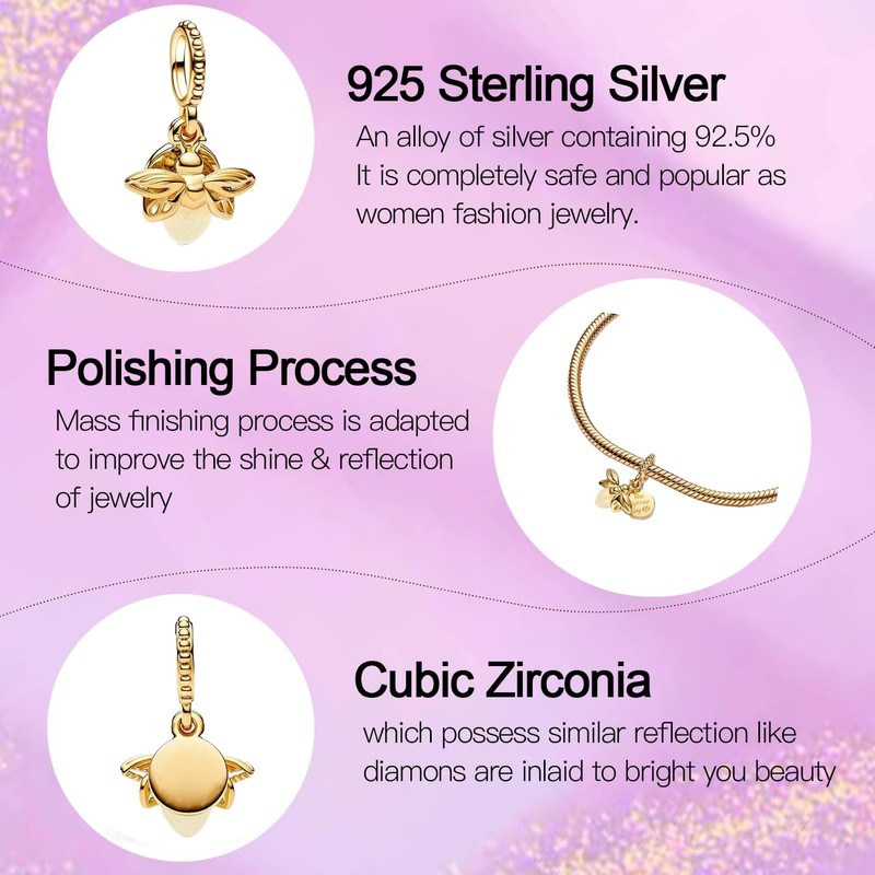 TAORUI Glow-in-the-dark Firefly Dangle Charm for Women Bracelets Necklaces in 925 Sterling Silver with Cubic Zirconia,Mother's Day Graduation Gifts for Her Women
