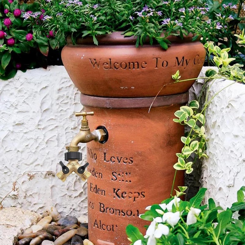 • Our 2-way distributor water 3/4 inch is compatible with garden hoses and accessories that use standard 3/4 inch connections. This quick connector fits perfectly with any standard garden hose, faucets and irrigation equipment, providing easy and hassle free installation.