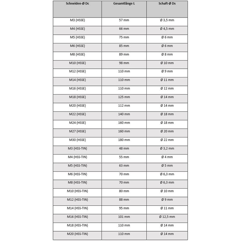 - DIN 371: with tip (M3 - M6) and thick shaft (M3 - M10)