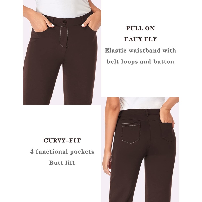 Tapata Women's 28''/30''/32''/34'' Stretchy Bootcut Dress Pants with Pockets Tall, Petite, Regular for Office Work Business 34", Brown, L