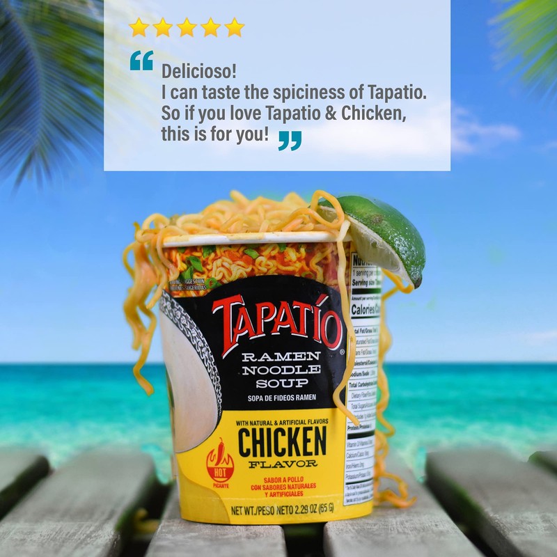 Bulk pack of 12 extra spicy flavored Tapatio ramen noodle soup cups. Tap into the flavor of Tapatio Ramen Noodle Soup. This Bulk 12-unit case packs a blend of seasonings with flavor that can be found in each bite. Quick and Easy to cook in 3 minutes, either in the microwave, or with boiling water. Cooking times vary based on cooking method, and microwave wattage. bowl for those with a hearty appetite. A Zero cholesterol/trans-fat meal or snack option! Store in a cool dry place. Allergen Warning: Contains wheat, soy, and eggs. Manufactured in a facility that also manufactures milk, fish, crustacean shellfish, tree nuts, peanuts and soy beans. Microwave cooking directions: 1. Open the lid halfway. 2. Add seasonings from packet and room temperature water to inside fill line. 3. Microwave for 3 minutes, stir and enjoy (Heat times may vary due to microwave wattage). Vegetarian, zero cholesterol, kosher Sopa de fideos ramen Sabor extra picante con sabores naturales y artificiales vegetariano caliente comestible segun la ley judia 🍲🍲 CUSTOMIZABLE - Instant noodles can be make into a satisfying restaurant meal experience by adding any number of toppings. Give american cheese, chicken, salsa, rice, fresh black pepper, frozen shrimp, Japanese beef, kimchi, pork, seafood, curry, hard boiled egg, canned meat, spices, chili flakes, mushrooms, organic vegetables from the grocery store, anything you can find in your pantry. Go wild, see what you can come up with that is just the right amount of gourmet weird and crazy sweet satisfying spicy noodles. 🍲🍲 FILLING - Our cups are delicious and come with a hefty amount of the best seasoning which creates a hardy foundation for a meal. This isn't your typical cups of ramen or soup you get from others. The cup is made to fill you up, so you can go on with your day feeling satisfied.