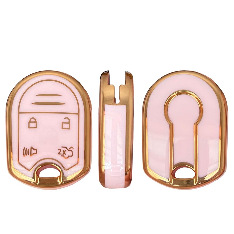 TAPAYICA for Ford Key Fob Cover Keyless Entry Systems Key Shell with Keychain Fit for Ford F-150/F150 F-250 F-350 Super Duty Explorer Expedition Lincoln Mercury MHz (Pink-Gold, 4 Buttons Trunk)