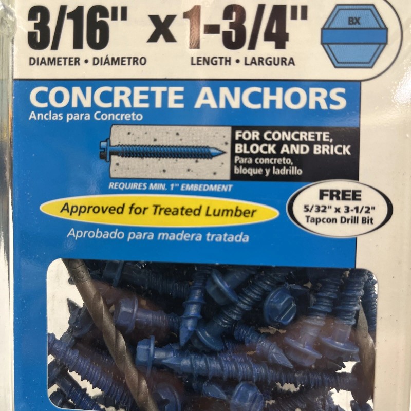 Tapcon 6 TAPCON Concrete Screws Tapcon 3/16” x 1-3/4” Anchors Block & Brick 24305