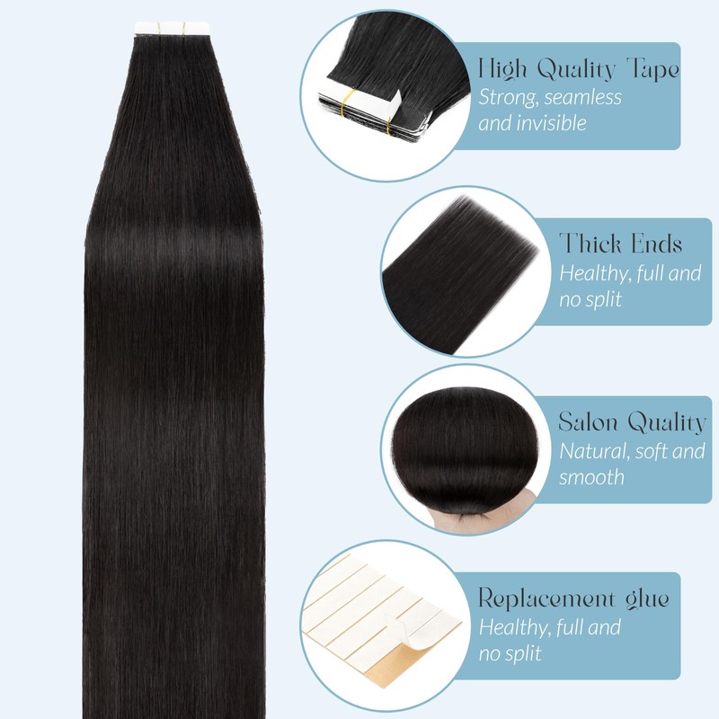 - 100% high-quality real hair: Our real hair extensions tape are made of 100% real hair, contain no synthetic fibres or animal hair, are soft, silky, shiny, comfortable and natural and support perming, colouring and straightening (it is recommended to dye light colours into dark colours, the temperature is ≤ 180 °C).