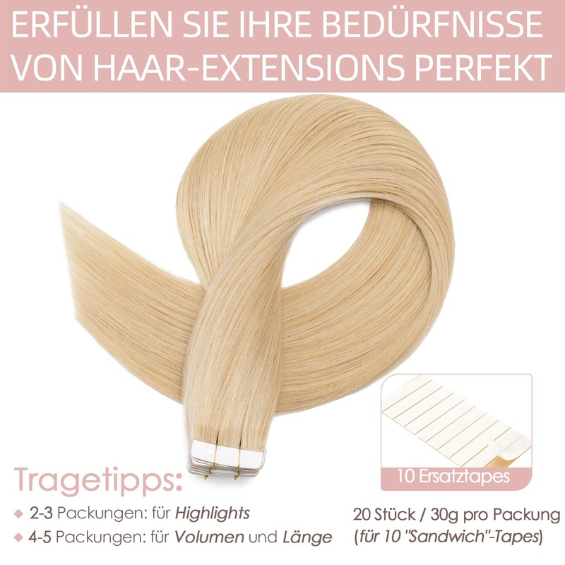 Tape Extensions Real Hair Tape-In Extensions Real Hair Soft Straight Tape in Extensions 7A Remy Hair Tape Hair Extensions 35 cm 20 g 24# Blonde Pack of 20