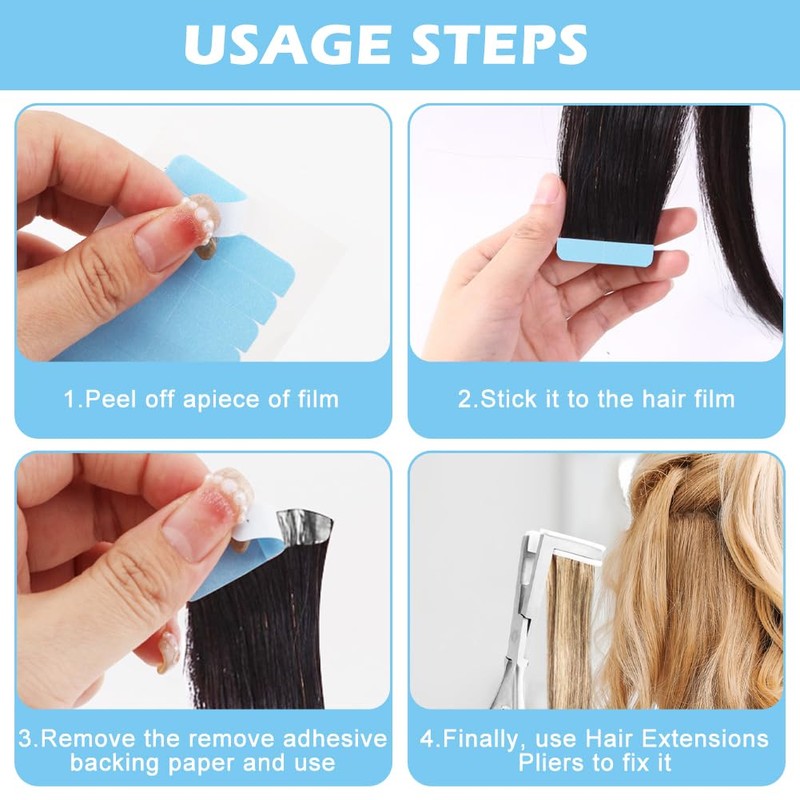 - 【HAIR CLIPS】Both hair gripper stickers and hair clips are designed to hold your hair or bangs in place without damaging or pulling your hair or hurting your scalp, and they can bring you practical convenience when styling is needed.These replacement tapes are transparent and thin, allowing hair to adhere seamlessly. Ideal for hair extensions and hair weft tape replacement.