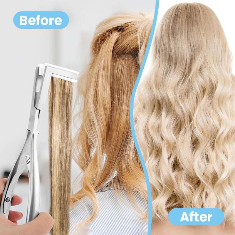 - 【HAIR EXTENSION PLIER】The hair extension pliers are made of stainless steel and silicone pad materials, allows you to install tape extensions more easily and conveniently, tape extensions are long lasting and flatter, high efficiency, save your time, will not cause damage to the hair.You can make the hair extensions you want and become the most confident girl.