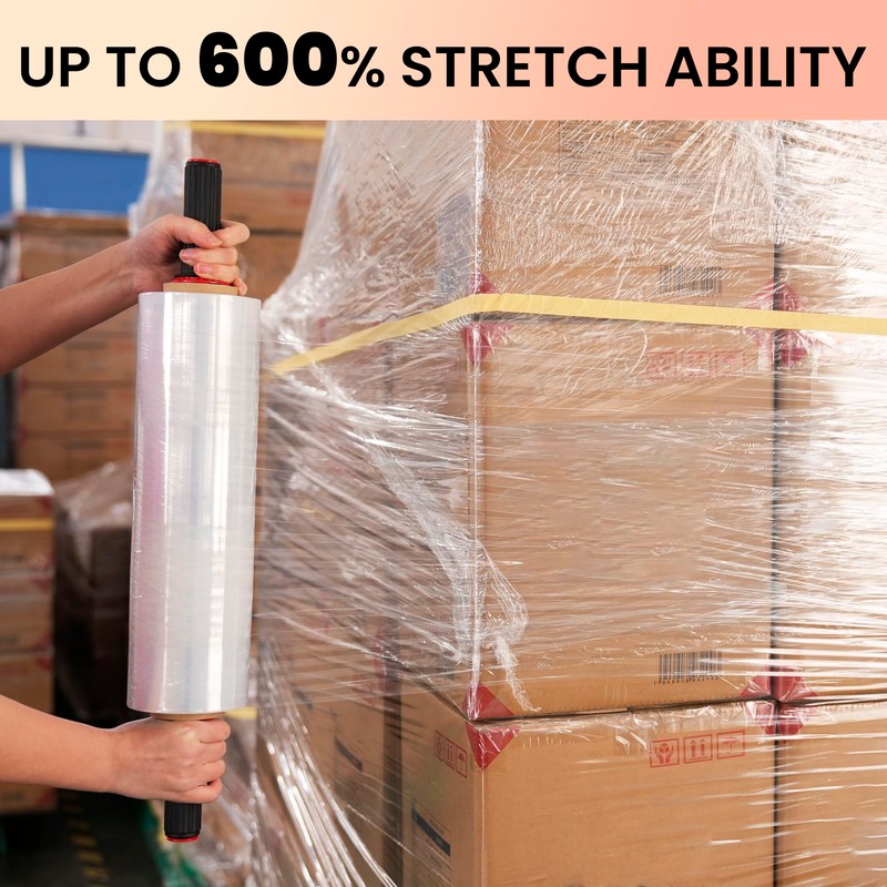 - INDUSTRIAL STRENGTH STRETCH FILM: This wrapping plastic roll is built with industrial grade 80 gauge (20 micron) thickness. At 15 inches wide, this stretch wrap can deal with some oversized stuffs such as logistics transportation, home moving, TV and furniture protection, sofa, carpet, luggage covering, and wrap pallets.