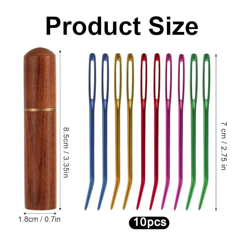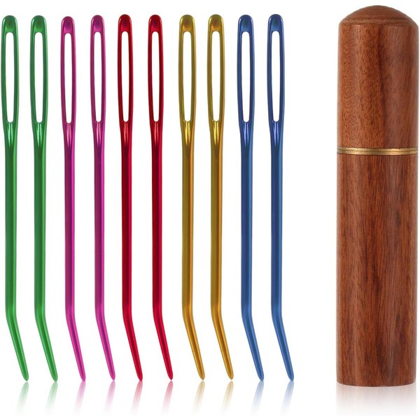 - What you get: 10pcs large eye sewing needles with wooden needle case for easy storage and use. Please see pictures for specific colors. Sufficient quantity and complete styles can satisfy your diverse crochet embroidery ideas, allowing you to unleash your imagination in DIY crafts.