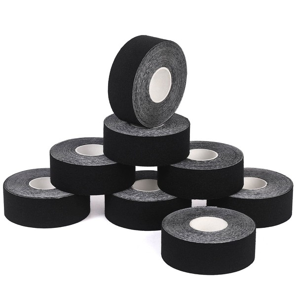 Taping Tape, 8 Rolls, 1.0 x 16.4 ft (2.5 x 5 m), Kinesiology Tape, Supports Muscles and Joints, Breathable, Stretchy, Sweat Resistant (Black)