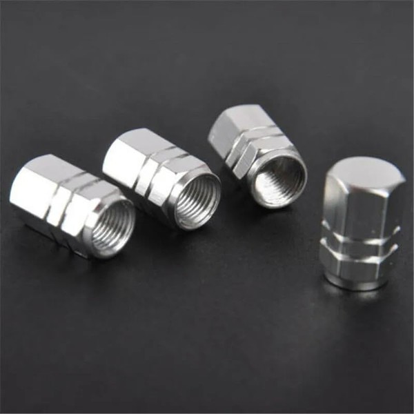 Tapon Pivote Valvula Cubre Llanta Aluminio Auto Moto 4-Pieza (Plata)