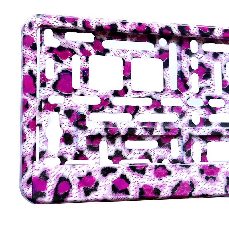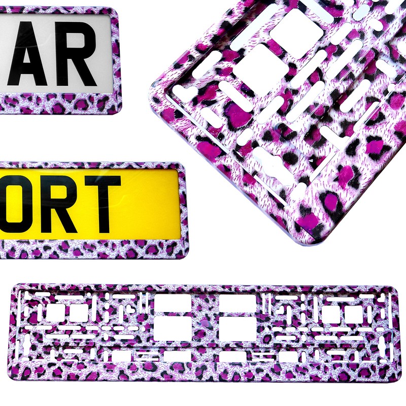 TAPORT® 1x PURPLE LEOPARD PRINT Car Registration License Number Plate Surround Holder Frame