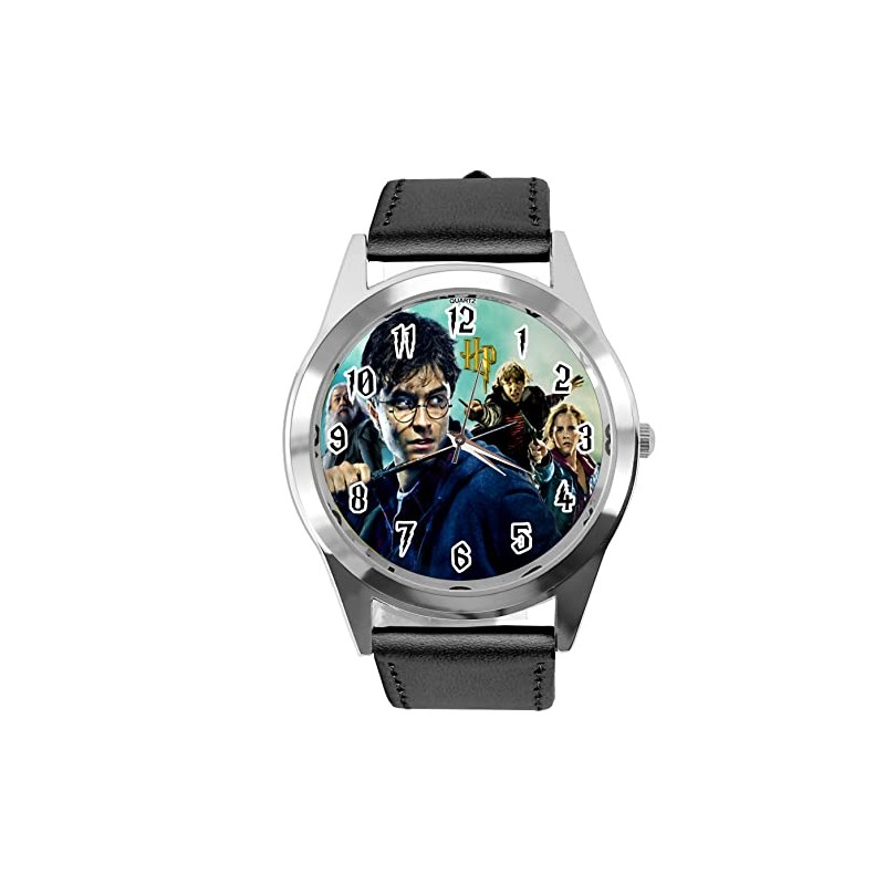 TAPORT Black Leather Round Quartz Watch for Wizards Fans E3, Black, Strap, black, Strap