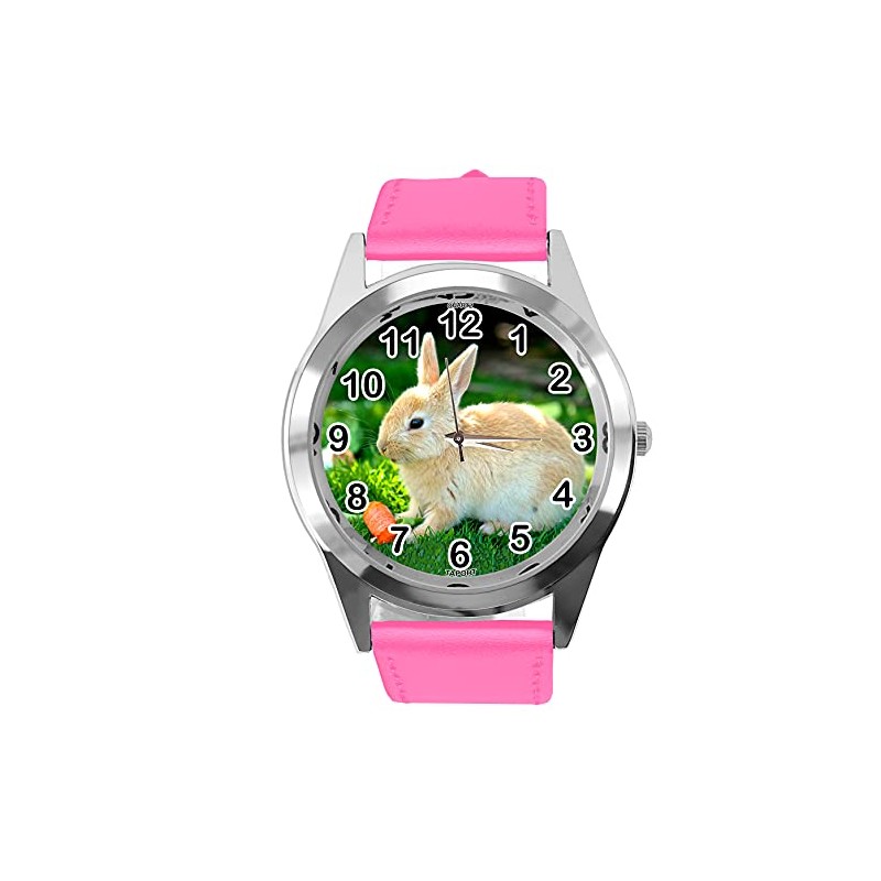 TAPORT HOT Pink Leather Round Quartz Watch for Rabbits Fans e2