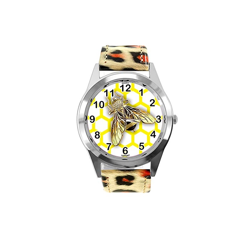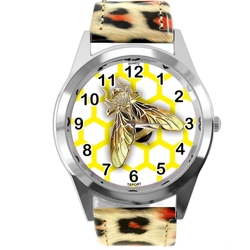TAPORT Leopard Print Leather Round Quartz Watch for BEE Fans