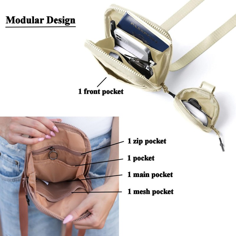 【Modular Design】Main pouch to hold your passport, phone safe and small pouch to hold your small items. 2-Way Zipper Design for easy access. You can combine your favorite styles according to your needs.