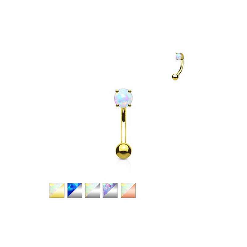 Curved barbell for many different piercings. Ball (ball) studded with a synthetic opal. With screw cap.