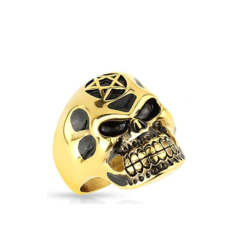 Tapsi´s Coolbodyart® Siegel Statement Ring Edelstahl Toten Kopf Stern Gold 69(22)