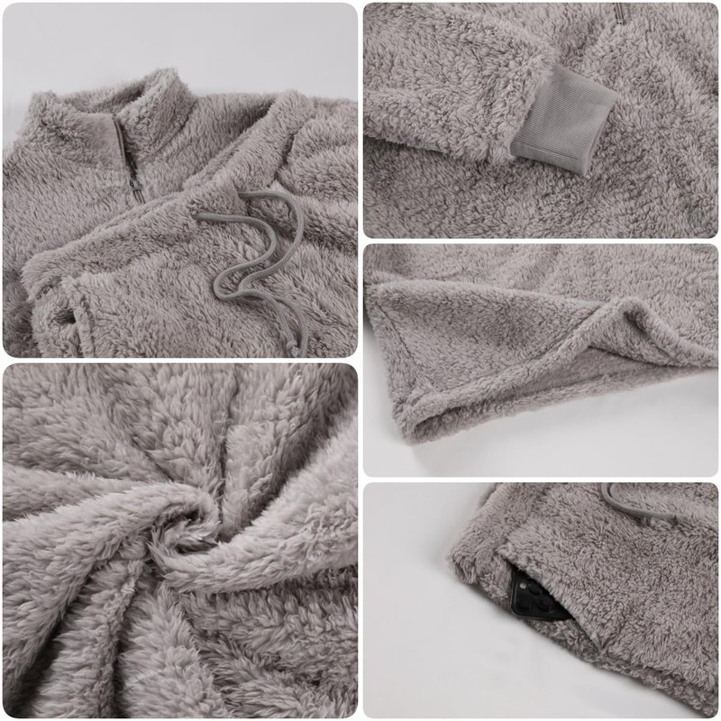 - Fuzzy pullover crop top: Coral fleece, fluffy, drop shoulder, quarter zipper, tightened cuffs and bottom, long sleeve, ribbed cuffs, fleece pullover top with a kangaroo pocket to keep hands warm