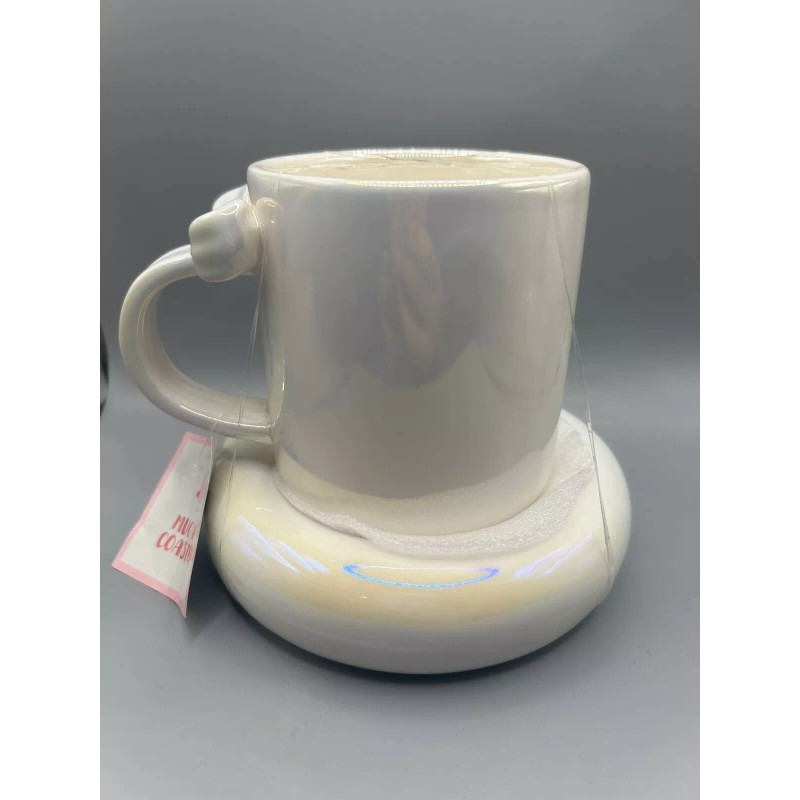 Target Bullseye Playground White Iridescent Mug With Bow Handle And Coaster NEW