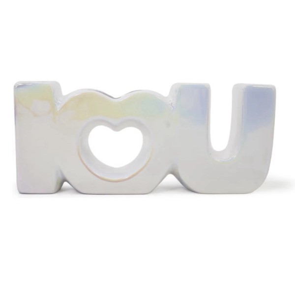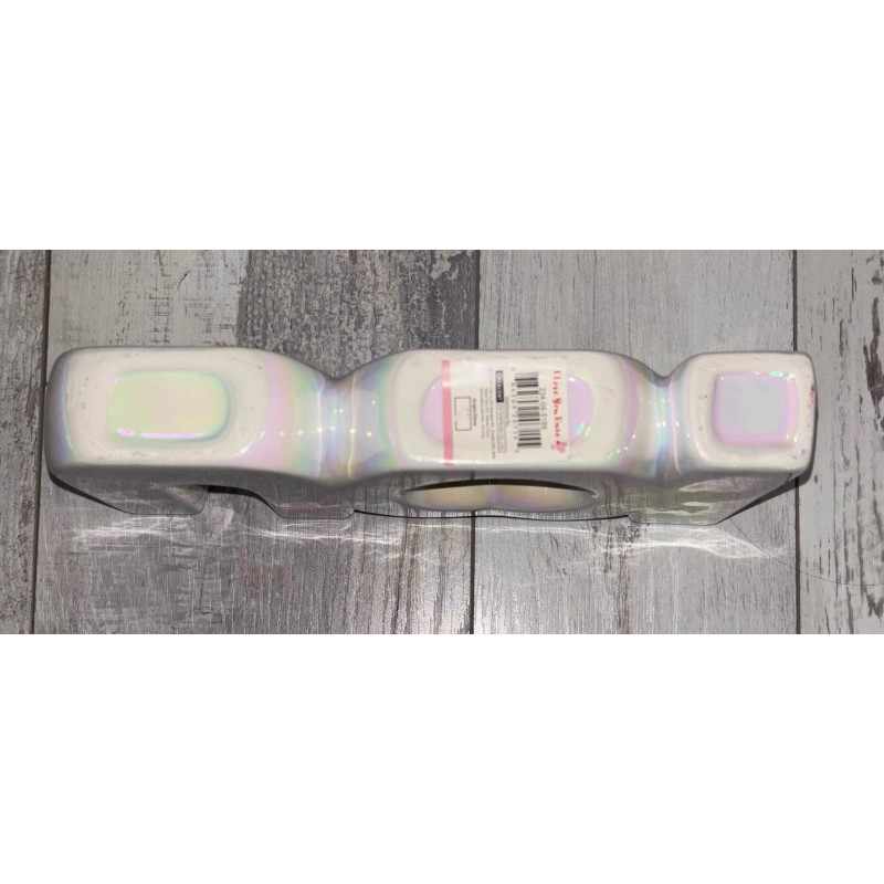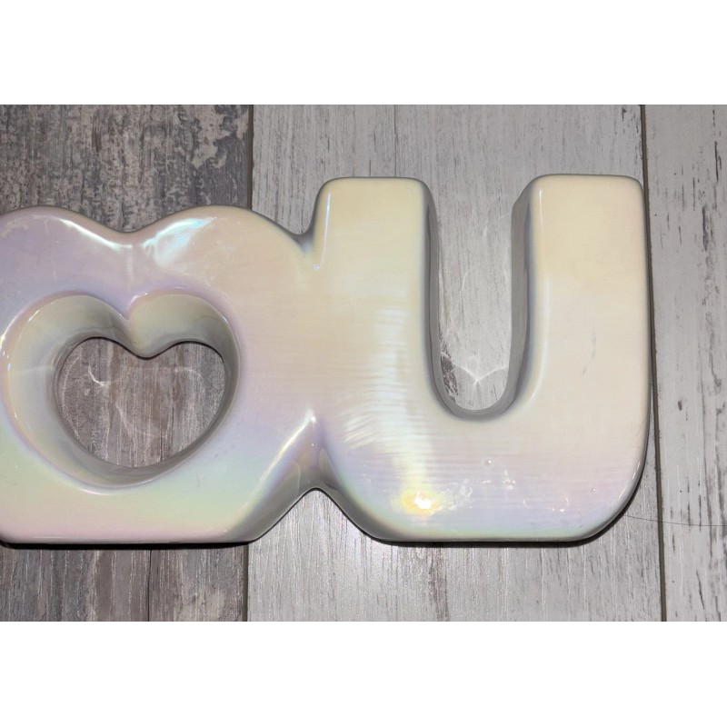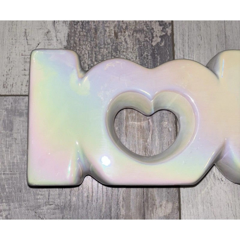 This Target Bullseye’s Playground “I❤️U” I Love You Vase is a charming flower vase featuring iridescent colors. This vase is perfect for displaying your favorite flowers or serving as a unique decorative piece in your home. The I Love You message adds a touch of sentimentality to the overall aesthetic, making it a lovely addition to any space.