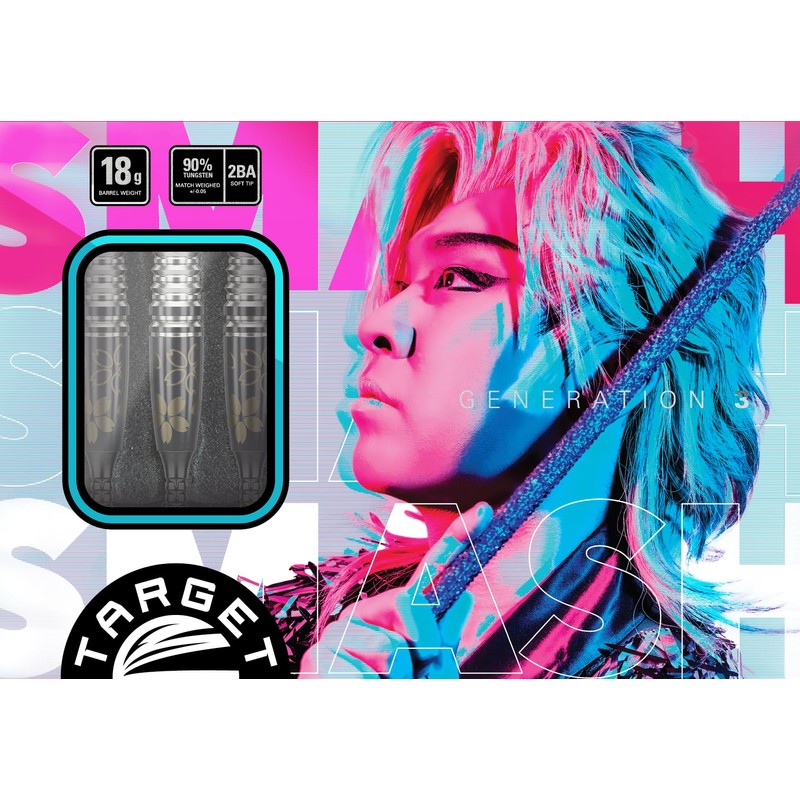 Target Japan CHARM SMASH GEN3 90% 18G 2BA SOFT TIP DARTS 90% Tungsten K-Flex 2BA Soft Tip Dart Set, 18.0G | CHARM SMASH GEN3 K-Flex No.6 Shape Flights and Shafts, 2BA White Pixel Tip (Smash G3)
