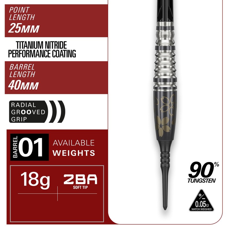 - Black Pixel Soft Tip: 25mm black pixel soft tip provides excellent grip on the board and minimal bounce out