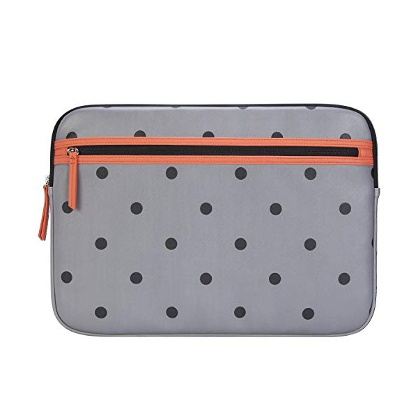 Targus Arts Edition Slim Protective Sleeve for 15.6-Inch Laptop Case with Zippered Pocket, Soft Shell Smooth Material, Polka Dot Design, Gray/Salmon (TSS999GL)