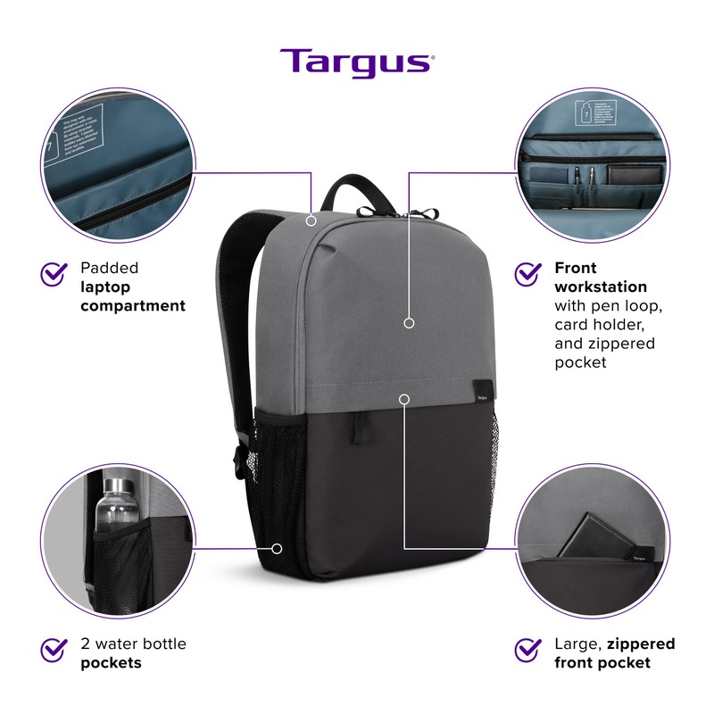 Targus Mochila TBB636GL 15.6 SAGANO Ecosmart Color Gris/Negro