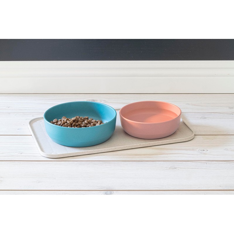 - Minimalist Design: A minimalist design in cream with beautiful natural flecking that seamlessly blends with any home decor. Placemat measures 16" x 10" x .4"; perfect for one, two or three feeding bowls.