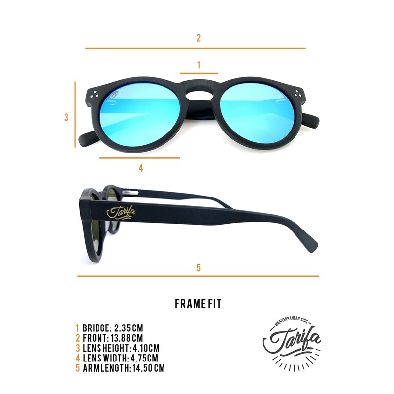 Tarifa Round Sunglasses with Polarized Mirrored Lenses (Black Matte & Blue Lenses)