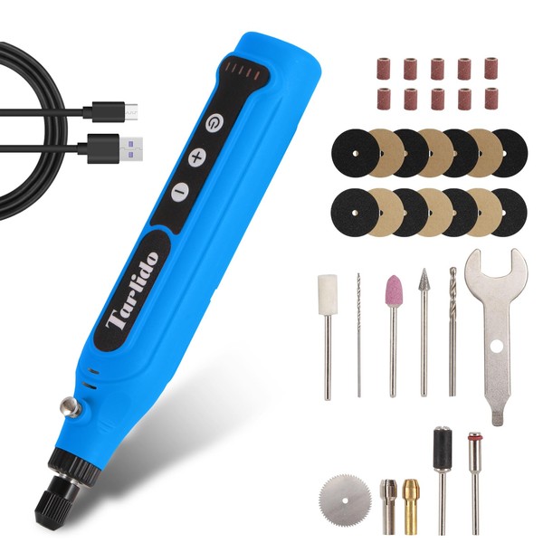 Tarlido Cordless Rotary Tool, Rotary Tool 4V, 5-Speed, 2.0Ah Capacity and Fast Charging, 31 Pcs Accessories, Lightweight, Ideal for Crafter and DIY Project, Blue