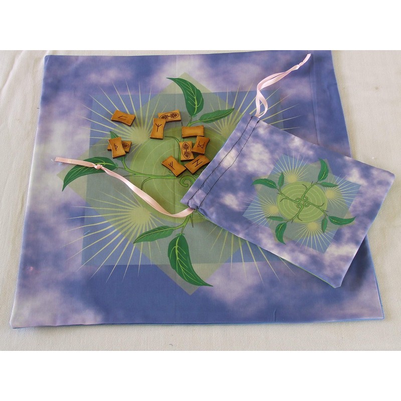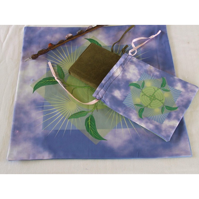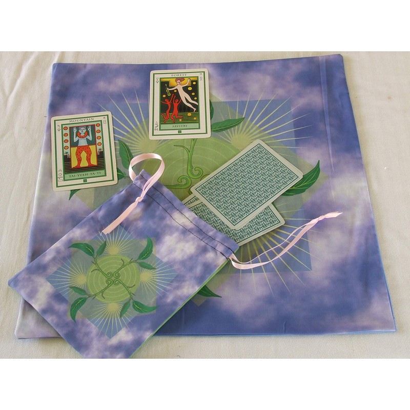 Tarot or Altar Accessory Set - Emergence, Sky Background - Altar or Tarot Cloth with Drawstring Bag - Divination Cloth or Casting Mat with Pouch