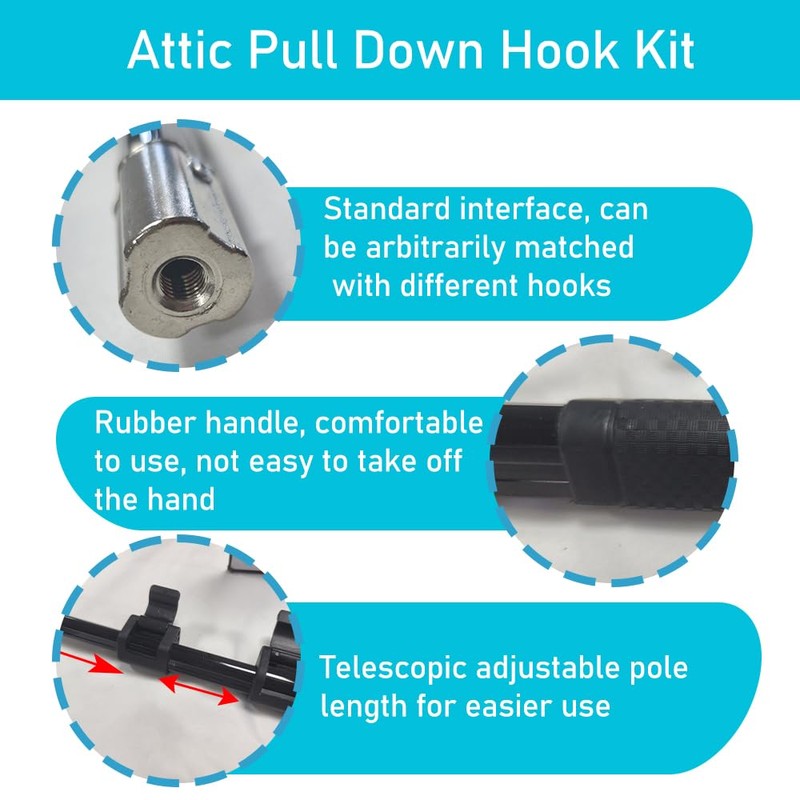 • Easy To Operate: You don't even need to splice, the attic extension rod can easily open or close the attic staircase pull down system door