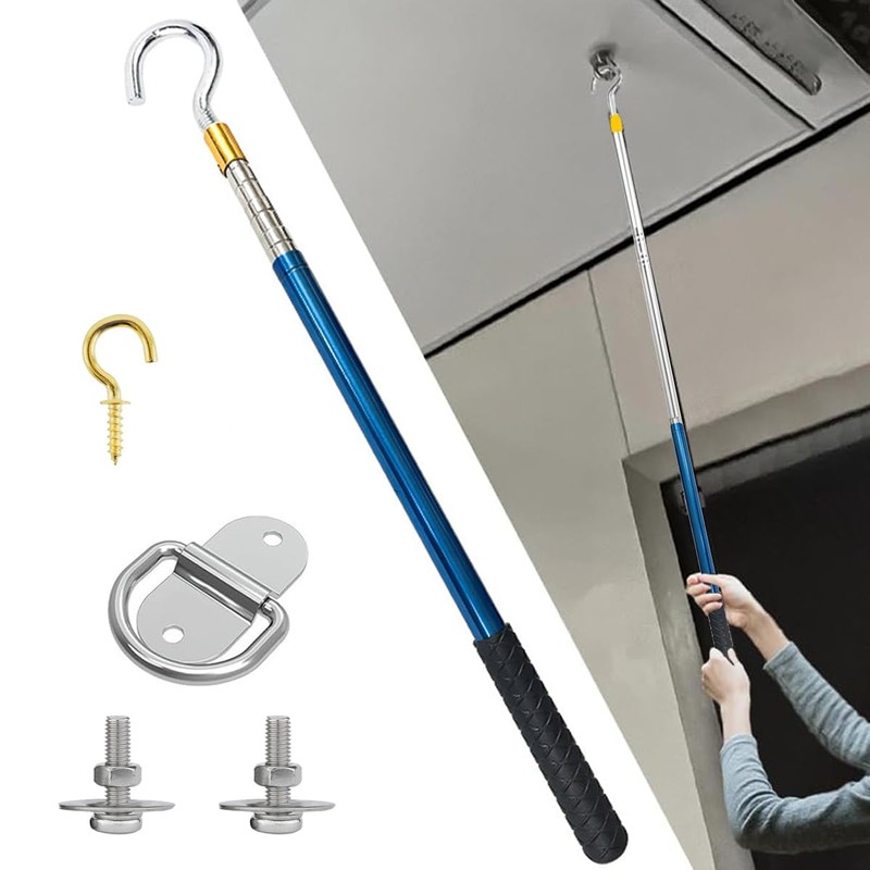 - Function: The attic ladder pull down system is designed to replace traditional attic ropes and is equipped with a high-end metal storage hook