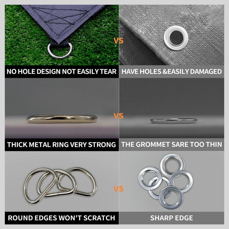 - 【D-shaped Metal Ring Heavy Duty Tarps】The TARPAL heavy duty tarp uses more robust D-shaped metal rings design instead of the original aluminum grommets. There is no need to punch holes in the edge of the tarp like grommets, so it will not damage the integrity and structure of the tarp.Make your tarp stronger when used, almost no fear of tearing.