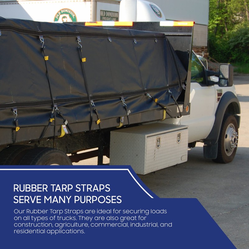 - WIDE APPLICATION: Our stretchy rubber straps help to secure moving trucks, cars, SUVs, boats, trailers, pickup beds, and outdoor hot tubs with rubber straps. Great for construction, agriculture, commercial and industrial applications.